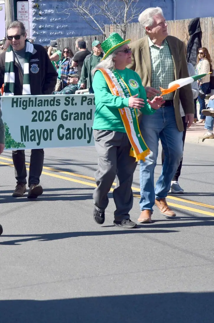 So spoke an enthusiastic and grateful Mayor Carolyn Broullon, following the very popular and highly successful St. Patrick’s Day parade Saturday where she was Grand Marshal and shared limelight with past grand marshals, including the first female mayor of Highlands, Anna Little, who led the parade in 2019.