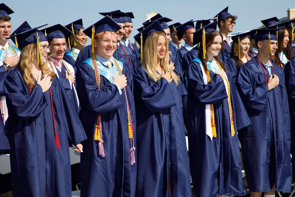 The Marine Academy Color Guard presented colors at the start of the ceremony and Elene Barcan, vice president of the Class of 2025 led the pledge of allegiance. Olivia Domagala, bandmaster, sang the National Anthem, and Meehan offered a welcome along with the county commissioners. Principal Earl Morre presented the graduating class of 2025 and Sgt. At Arms Liam O’Reilly called the order for graduates to change their tassels, signifying the graduation before the recessionals, a tossing of the caps on Pershing Field and a reception.