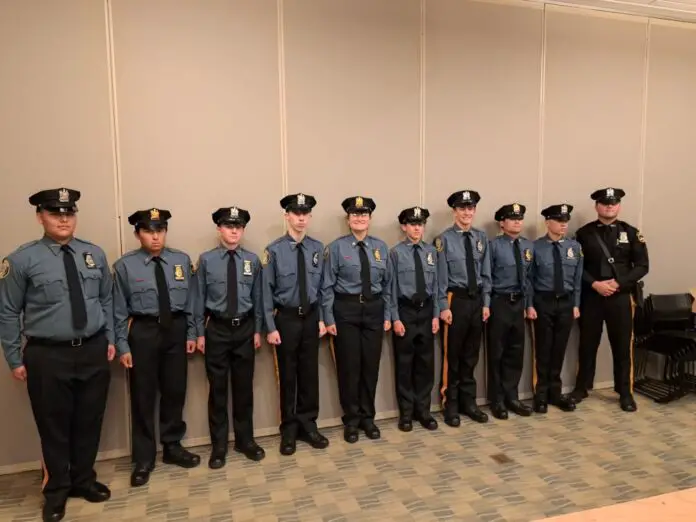The third year, Phase 3, is known as the “fun phase” when explorers are given duty belts with a rubber gun, training handcuffs, and a radio. They then serve as the campus police for the week.