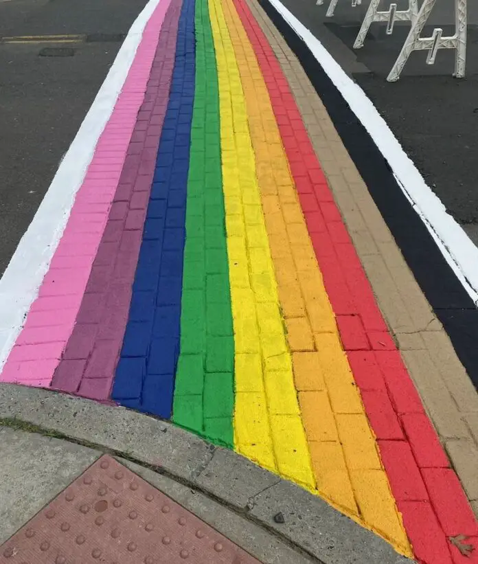 Last month, with no action at any meeting, and no apparent objections, workmen closed off a portion of Waterwitch Avenue near Huddy Park, to paint a crosswalk with the multi colors of Gay Pride. The crosswalk is adjacent to the park named for the Revolutionary hero who was reportedly hung at the park site. The administrator had indicated, when questioned about the multi colors that were on the crosswalk, that somebody requested it it did not cause any problem, so he allowed it.