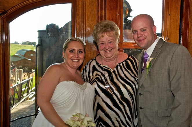 Jason Smith and Melissa were married Aug. 24, 2013 on the train to Paradise. In Pennsylvania, that is. And they followed the ceremony with a gala reception at the Pennsylvania Railroad Museum at the Strasburg Railroad Station. A second marriage for each, the couple wanted to make this wedding day something unique, unforgettable, and joyful. Jason, the grandson of a PRR locomotive engineer and an avid model railroader, frequently took Melissa to Strasburg to see the countryside, take a train ride past lush farms and picturesque homesteads in the heart of Amish country, and visit the museum. In the museum, he pointed out the engines his grandfather had run nearly half a century before and stood with pride before his grandfather’s name on the PRR Wall of Honor, denoting the senior Smith’s four decades as a locomotive engineer. Melissa had always recognized Jason’s fondness for the railroad, and everything connected to it, so she wondered whether it would be possible to be married on the train and have a reception at the Museum. When the couple inquired., they found a friendly, helpful, and enthusiastic staff both at the Railroad and in the museum to make their dream come true. The couple carried out their Railroad theme from the very start, issuing their invitations in the form of train tickets, complete with punches from a conductor’s authentic punch. They reserved the first class car on the 5 p.m. train at the Strasburg station, and arranged for their minister, complete with a speaker system, to officiate as the giant steam locomotive lumbered its way to Paradise, soft music playing in the background, Keeping the tradition of the groom not seeing the bride until she walked down the aisle, Melissa stayed in the Station until Jason was aboard, then snuck in the passenger car’s rear door to stand behind a wall until the bridal music began. She chose to ask Jason’s seven-year-old son, James, to be ringbearer and her sister as maid of honor. The trio walked down the gently swaying passenger car center aisle, to a beaming Jason, his dad, Bob as his best man, and the minister, all prepared at the end of the car. The huge windows gave a glimpse of the hundreds of tourists delighted with the extra thrill of seeing a bride, as well as the white smoke billowing out of the engine just ahead of their car. By the time they reached Paradise, Jason and Melissa were Mr. and Mrs. Smith. As is the normal procedure for the scenic rail ride, for the return portion of the 45-minute journey, the engine was switched, and the Smiths and their wedding guests were at the rear of the train. At the station, they posed for photos from the outside car platform, behind a hastily hung “Just Married” sign that swung from the platform railing. After more photographs and congratulations from friends and strangers alike, the couple headed across the street to the PRR Museum, where their guests enjoyed a sumptuous cocktail hour in the simulated small town train station. Following that, and ample time for the guests to enjoy an afterhours roam through some of the numerous exhibits at the museum, the wedding party moved into the main exhibition hall. There the decorated tables were surrounded by steam, electric and diesel engines from a bygone era. Each table was decorated with a miniature railroad lantern, and the buffet tables and music platform encircled the reception area. Jason took the time between accepting congratulations and beaming over his new wife’s beauty and happiness to point out the engines his Pop Pop had run. He also received special permission to board Engine #4935 and recreate a family photo of his grandfather in that same engine. Carrying the railroad tradition to yet another generation, Jason’s son James also hung out the window like an experienced engineer for a photo. The couple pointed out the K4 the senior Smith had also run and explained to guests that he had worked both passenger and freight trains until his retirement in 1992. Both the bride and groom wanted Jason’s grandfather to be a part of the ceremony, so they had also arranged for a special exhibit at the Wall of Honor. Amid hundreds of names, most added since the senior Smith’s name was first engraved, Museum staff had highlighted his name on the wall, and set a candle and the 2178 photo in front of it. Did she miss the pomp and circumstance of a formal church wedding and an elegant reception at a glamourous club or restaurant? “Not at all,” an exuberant Melissa said, “I knew this was something Jason would love, and that meant I would love it, too. It was exciting, I loved having all the tourists clapping and smiling for us, and all our guests say it was the most unusual wedding they’ve ever attended. Add the sunshine filled day that we had, it was the perfect wedding in the perfect location to the perfect man.”