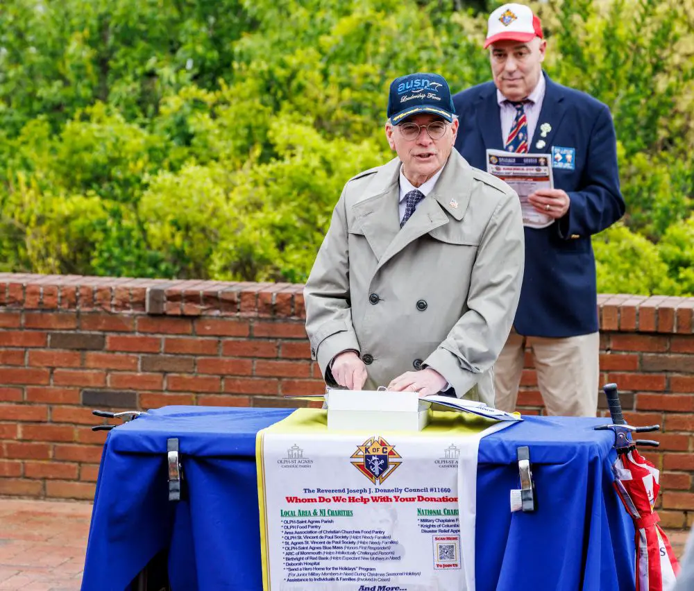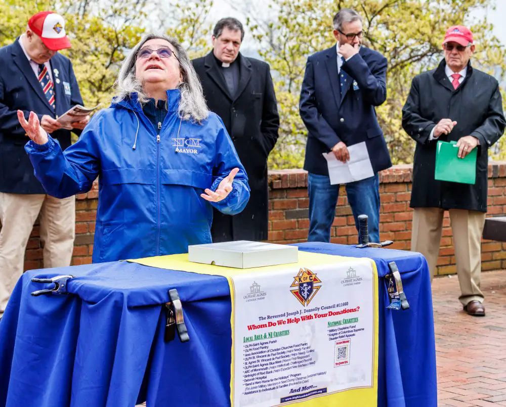 Participating in the event along with the Father Donnelly Council of the Knights were the Bishop McFaul Assembly, the patriotic fourth degree of the Knights of Columbus, Highlands Mayor Carolyn Broullon and Council President J-Anne Olszewski, Highlands Police Chief Robert Burton and members of the police department and First Aid Squad, the Rev. Christopher Picollo, pastor of the Church of the Nativity and a 4th degree Knight and Chaplain of Council 3187, and the FVW Post 6902 of the Veterans of Foreign Wars and American Legion Post 143, both of Highlands.