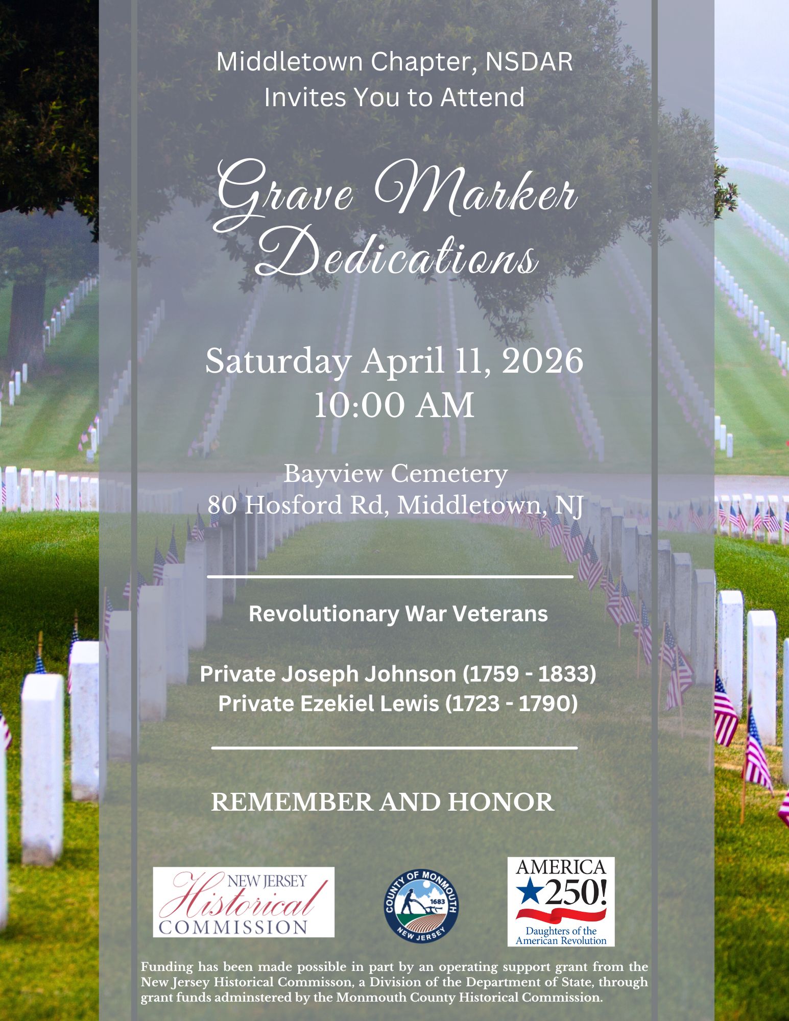 The DAR has been aided in dedicating the two graves through grants from the New Jersey Historical Commission, the America 250 AR and Monmouth County.