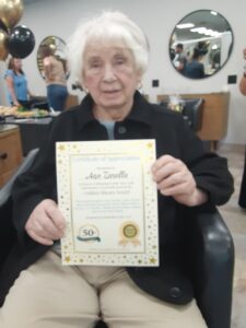 Actually the celebration was for more than half a century, as many of the longtime customers remembered the business was started by their mom, the late Ann Muratore, who began washing heads and setting styles in her kitchen at the Muratore home in Leonardo.