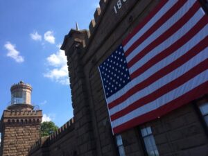 It was the John Paul Jones flag which was flown during the 1893 ceremony at the Twin Lights when the Pledge of Allegiance was given publicly for the first time as a sign of America’s national oath of loyalty.