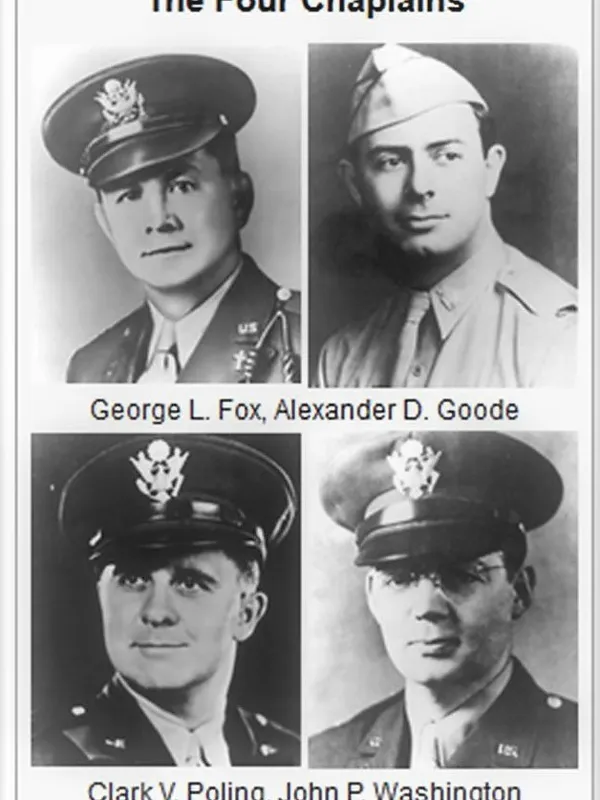 The chaplains were Lieutenant George L. Fox, a Methodist minister. From Lewistown, Pa., Lieutenant Alexander D. Goode, a Jewish rabbi from Brooklyn, Lieutenant Clark V. Poling, a Dutch Reformed minister from Columbus, Ohio and Lieutenant John P. Washington, a Roman Catholic priest from Newark. Their sacrifice became an enduring symbol of interfaith cooperation and selfless service, expressed in the motto “Unity without Uniformity”.Â